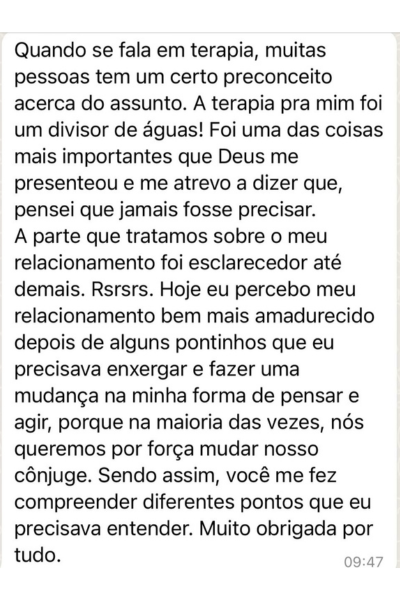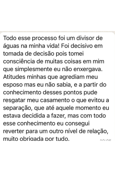 Com mais de 9 mil atendimentos individuais, desenvolvi um método estruturado e humanizado que já apoiou centenas de mulheres a reconquistarem a clareza interior, tomarem decisões com mais segurança e reconstruírem a confiança em si mesmas.